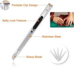 【High-quality Materials】Utility knife blades are made of stainless steel, which is not easy to deform, corrosion resistance, scratch and wear resistance, strong toughness, not easy to break, will not rust, and have a long service life.