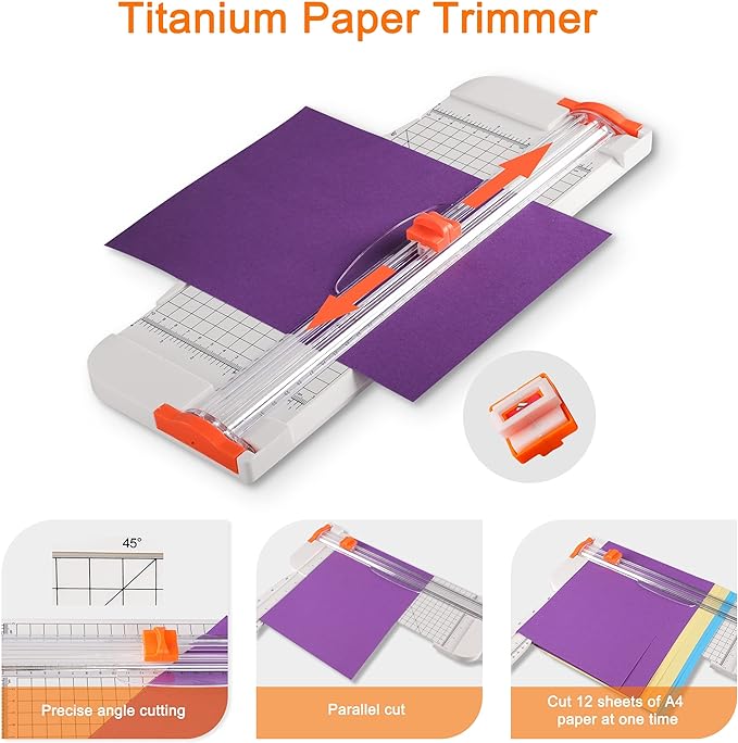 【 Paper Trimmer for Crafting】Relying on high-quality hard alloy blades, precise cutting can be achieved. 12inch paper cutter can Cut 7-12 sheets of paper at a time, which is very suitable for use in the office or home or craft projects. The sliding guide system ensures the cutting straight line is stable, the design is safe, protects your fingers from touching the blade, and keeps away from any dangerous operations.