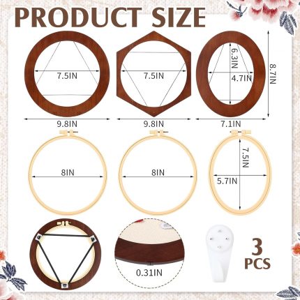 3 Set Embroidery Hoop Frame 8 Inch Decorative Wood