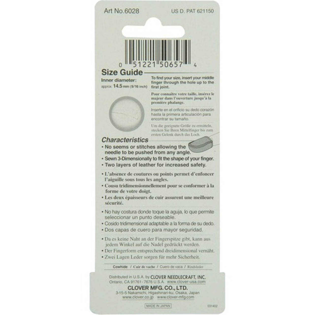 - Natural fit leather thimble; small